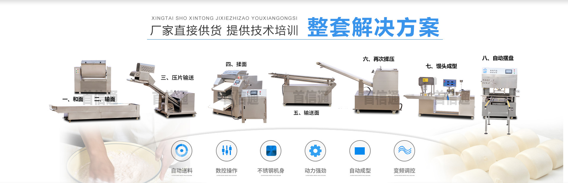 邢臺首信通機械制造有限公司的主打產品有:饅頭機,智能饅頭生產線,包子機,餃子機,剁餡機,揉面機,各種設備均可來電定做。